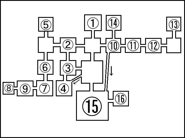 *マップの矢印↓は、下に落ちると進む場所を表す